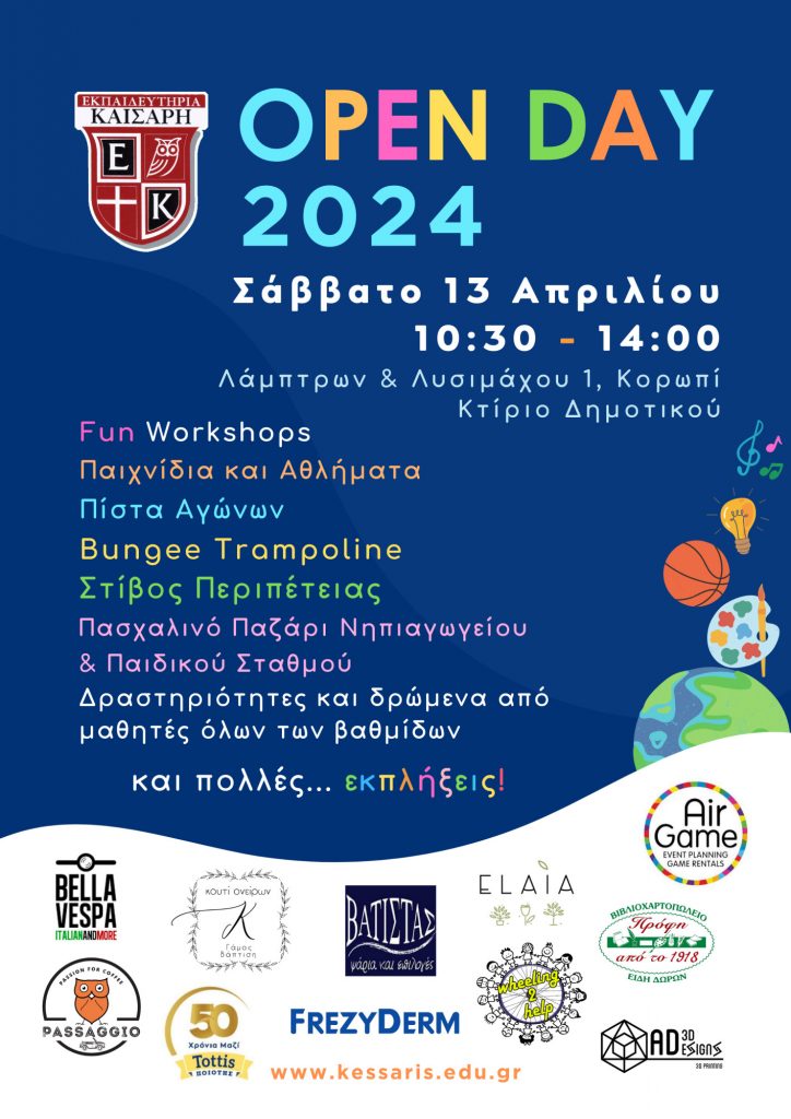 Τα Εκπαιδευτήρια Καίσαρη σας προσκαλούν στο Open Day του σχολείου τους που θα πραγματοποιηθεί το Σάββατο 13 Απριλίου και ώρα 10:30 -14:00.