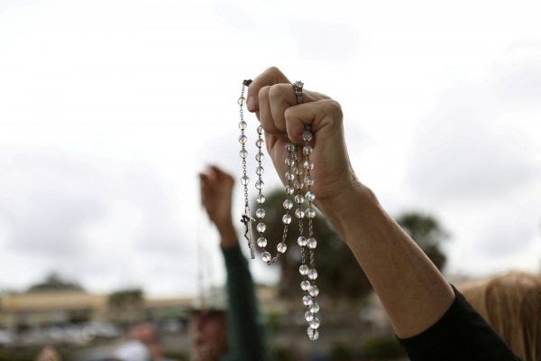 Με ένα ροζάριο των καθολικών στο χέρι, διαδηλώτρια ζητά την απαγόρευση των αμβλώσεων. Οι δύο όψεις, σε ένα ζήτημα που αφορά ανθρώπινα δικαιώματα και δεν θα έπρεπε να διχάζει.