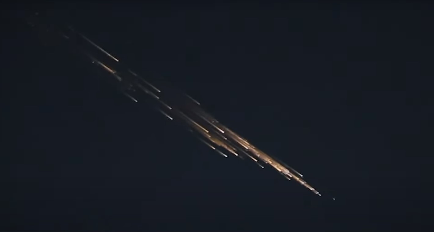 Η φωτεινή λωρίδα, που αρχικά καλύφθηκε από μυστήριο, ταυτοποιήθηκε αργότερα ως συντρίμμια από την εκτόξευση του πυραύλου SpaceX, περίπου έξι ώρες νωρίτερα από τη βάση Vandenberg Space Force Base, περίπου 160 μίλια βορειοδυτικά του Λος Άντζελες.