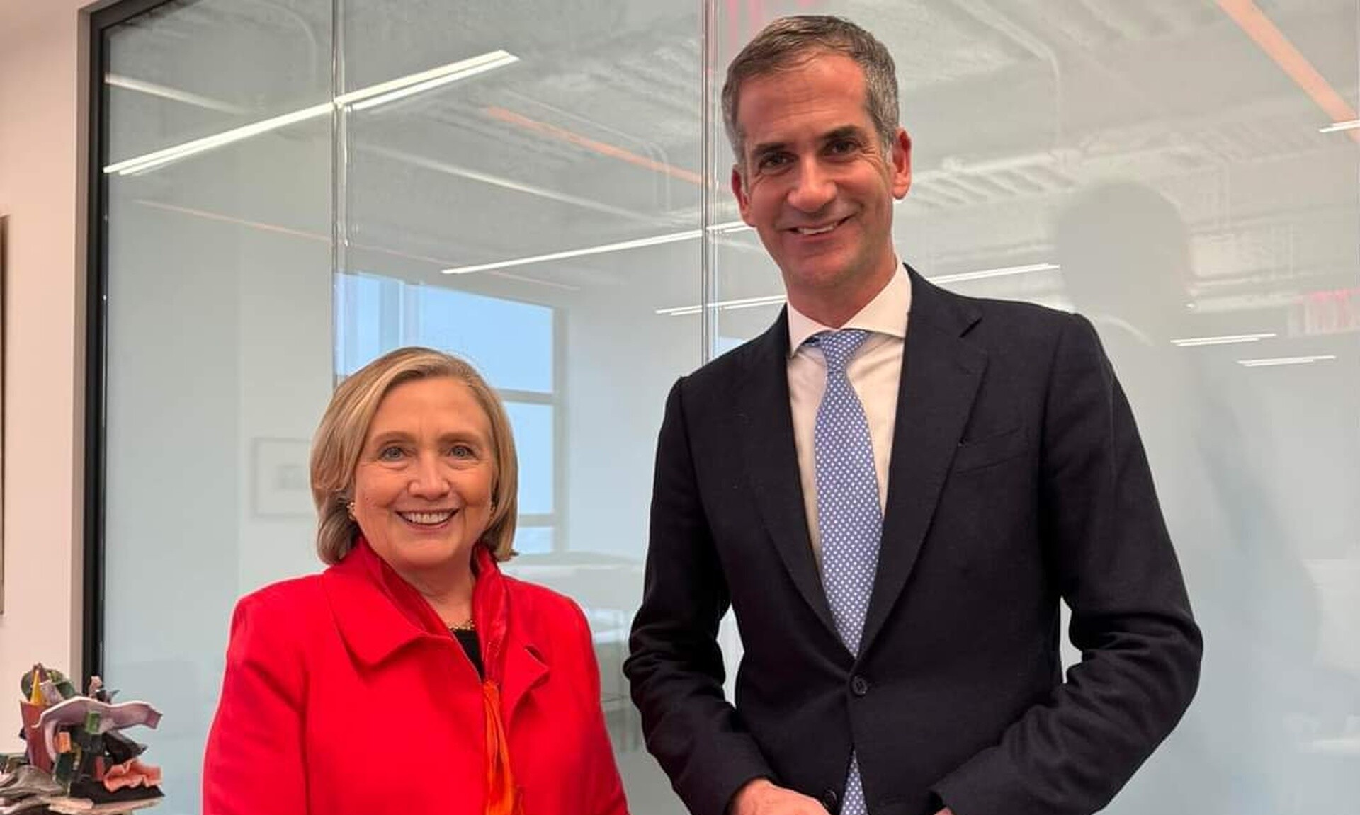 «Μεγαλη τιμή να συναντώ την Hillary Clinton. Σε μια πολύ ενδιαφέρουσα συγκυρία για την πολιτική παγκοσμίως, συζητήσαμε για τις νέες προκλήσεις, τις νέες προσδοκίες, τις νέες ανάγκες των πολιτών.