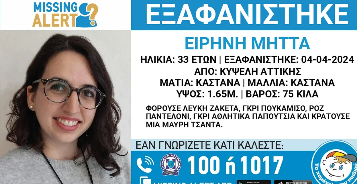Συναγερμός έχει σημάνει στις Αρχές για την εξαφάνιση 33χρονης από τη Κυψέλη, για την οποία έχει εκδοθεί Missing Alert.