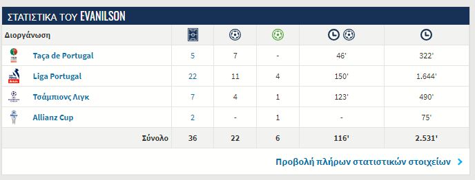 Ο 24χρονος επιθετικός φέτος μέχρι στιγμής έχει αγωνιστεί σε 36 αναμετρήσεις σε Πορτογαλία και Ευρώπη, έχοντας 22 γκολ και 6 ασίστ σε 2.531 λεπτά.