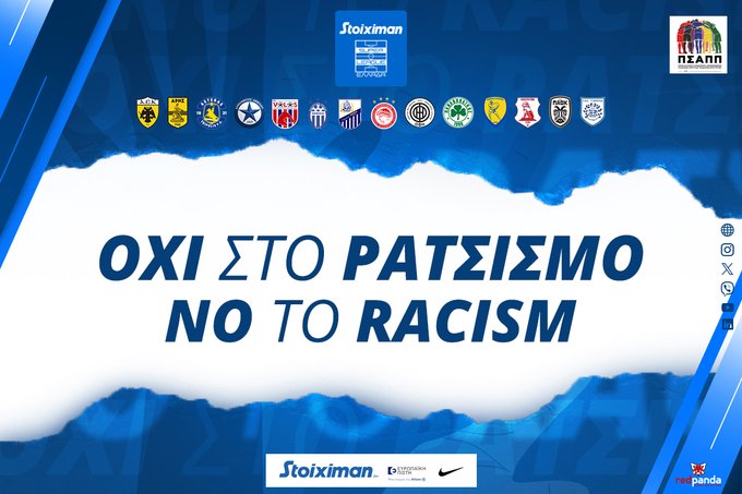Ηχηρό «όχι» στο ρατσισμό από τη Super League και τον ΠΣΑΠΠ#slgr #stoiximansuperleague #playoffs #playouts #Notoracism #stoiximan #football https://t.co/NrYxXvwIYg pic.twitter.com/Bi8gMSLkDo
