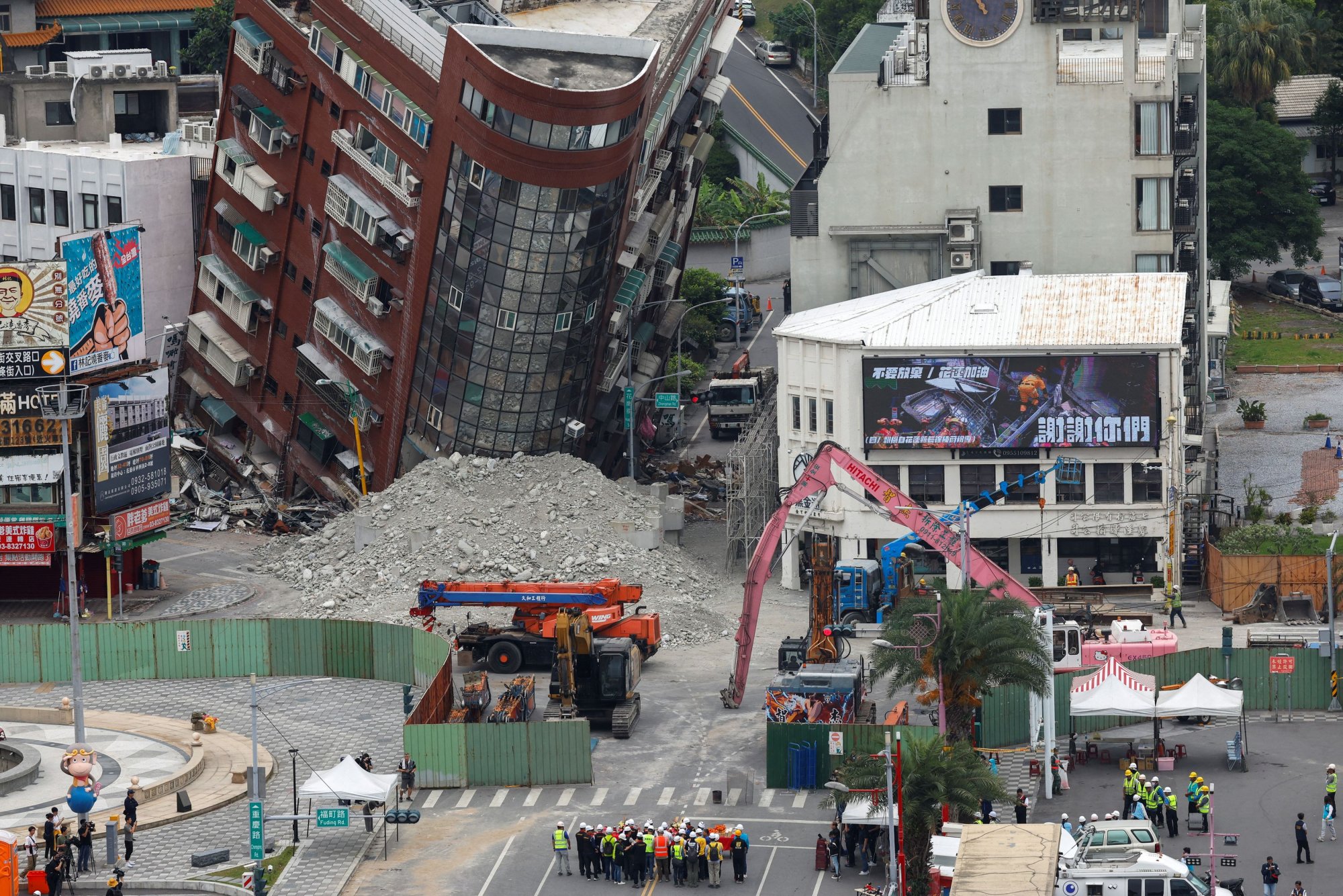 Emergency response teams have begun tearing apart the structure in Hualien City, that was left severely damaged and teetering by the devastating earthquake on Wednesday.