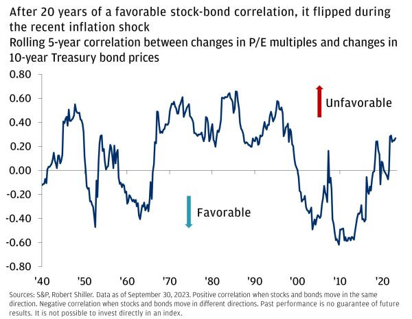 Με τον πληθωρισμό να κινείται πλέον σταθερά χαμηλότερα, η JP Morgan βλέπει τα ομόλογα να παίζουν νέο ρόλο στα χαρτοφυλάκια. Με βάση την ανάλυσή της, πιστεύει ότι ο πληθωρισμός κάτω του 3% πιθανότατα θα επιτρέψει την επιστροφή μιας ευνοϊκής αρνητικής συσχέτισης μετοχών-ομολογιών.