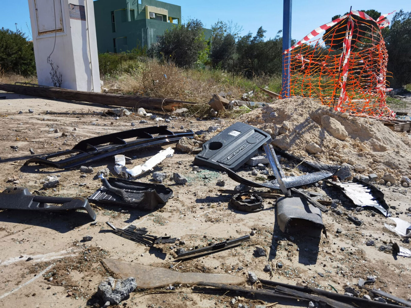 Ο δρόμος γέμισε με συντρίμμια, αποδεικνύοντας την σφοδρότητα της σύγκρουσης.
