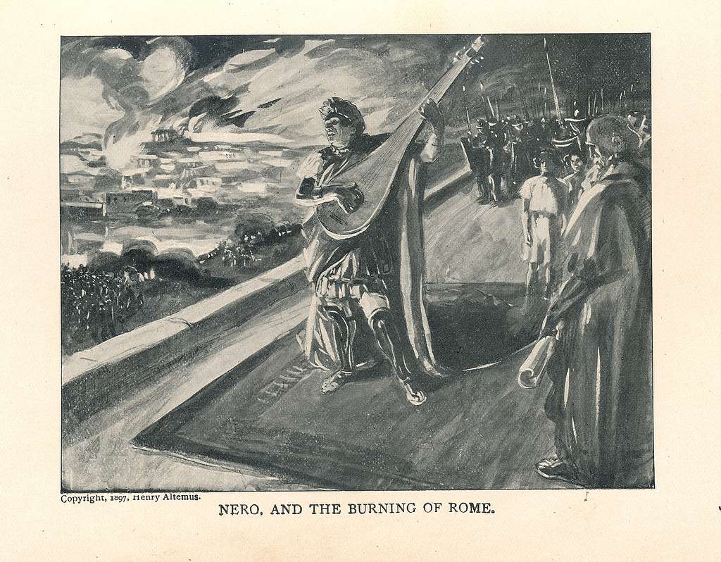 Ο αυτοκράτορας κατηγορήθηκε και αυτός με τη σειρά του, σύμφωνα με μια εκδοχή που πολλοί ιστορικοί αμφισβητούν, κατηγόρησε τους χριστιανούς – αν και η εικόνα του Νέρωνα να παίζει τη λύρα του ενώ η Ρώμη καίγεται είναι εντελώς ψευδής