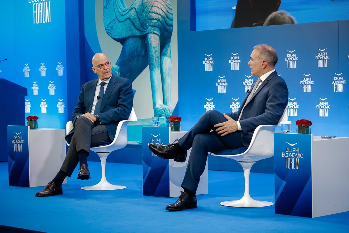 Ο υπουργός Εθνικής Άμυνας, Νίκος Δένδιας, μίλησε στο πλαίσιο του 9ου Οικονομικού Φόρουμ Δελφών, με τον Κωνσταντίνο Φίλη, διευθυντή του Ινστιτούτου Διεθνών Υποθέσεων (IGA)