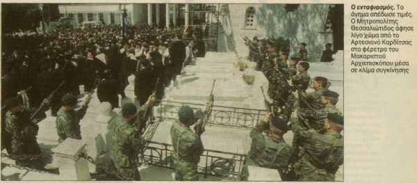 Με αυτά τα λόγια αποχαιρέτησε στη Μητρόπολη των Αθηνών τον Μακαριστό Σεραφείμ (κατά κόσμον Βησσαρίωνα Τίκα) ο επίτιμος πρόεδρος του ΚΚΕ, Χαρίλαος Φλωράκης, την ημέρα της κηδείας του, τη Μεγάλη Δευτέρα 13 Απριλίου 1998.