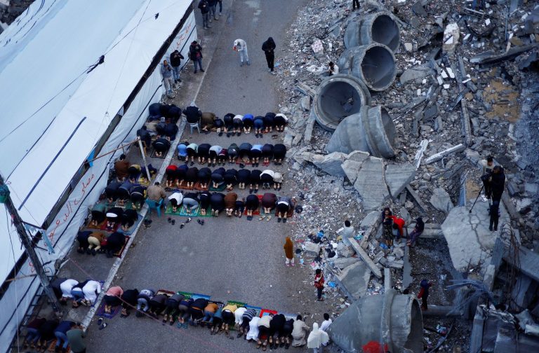 Παλαιστίνιοι προσεύχονται στα συντρίμμια της Γάζας