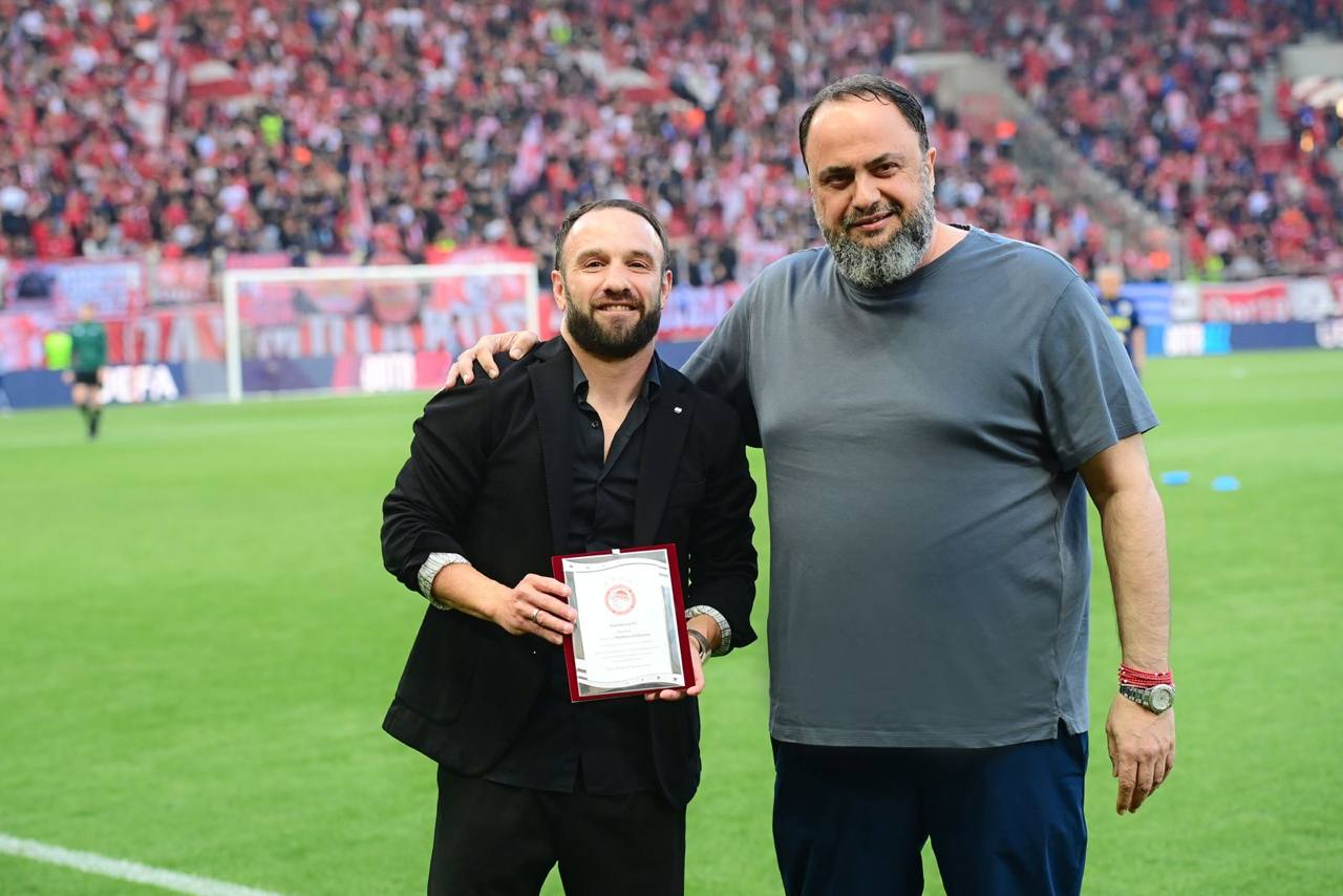 Λίγο πριν την έναρξη της αναμέτρησης, ο πρόεδρος της «ερυθρόλευκης» ΠΑΕ βράβευσε τον Ματιέ Βαλμπουενά, για την προσφορά του στους Πειραιώτες. Ο Γάλλος μεσοεπιθετικός «υπηρέτησε» τους Πειραιώτες από το 2019 μέχρι το 2023 και πλέον αγωνίζεται στην Κύπρο και τον Απόλλων Λεμεσού.