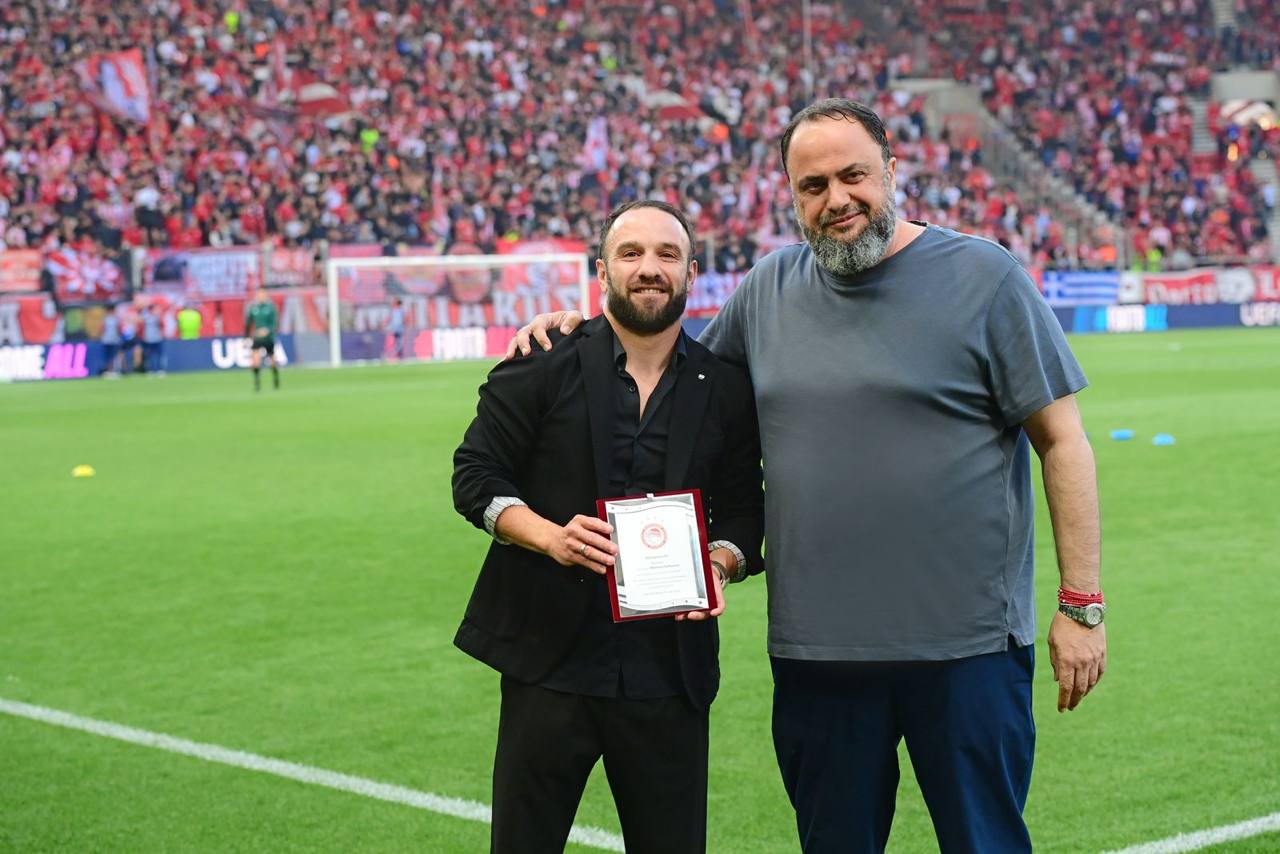 Η ΠΑΕ Ολυμπιακός και ο πρόεδρός της Βαγγέλης Μαρινάκης, βράβευσαν τον Ματιέ Βαλμπουενά για την προσφορά του στον σύλλογο λίγο πριν την έναρξη της αναμέτρησης με τη Φενέρμπαχτσε (19:45) για τους «8» του Conference League.
