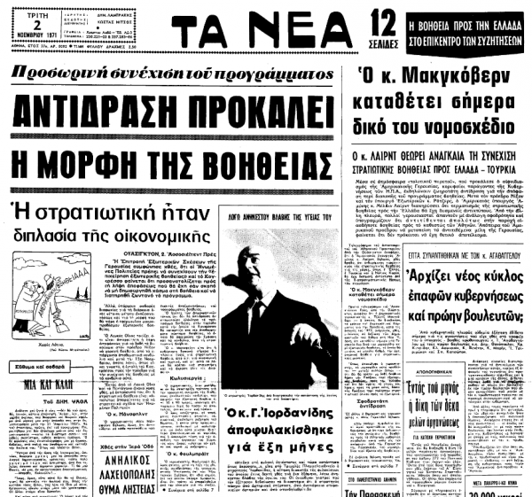 Διάλογο μού ζητά ο νέος — δεν θα του αρνηθώ, λοιπόν, κάποια απάντηση. Ανήκει, λέει, στην μερίδα εκείνων που θεώρησαν και θεωρούν σφάλμα από μέρους μου «την επάνοδό σας στην δημοσιογραφία μετά την 21 Απριλίου 1967». Να του απαντήσω, πρώτα, επί του προκειμένου: Παραιτήθηκα επί δύο ολόκληρα χρόνια από την δημοσιογραφία —κατά το διάστημα αυτό— και ουδείς σκοτίστηκε, ουδείς φούρνος εχάλασε. Ο δε φέρελπις νέος επιστολογράφος μου με έγραψε, βεβαίως, στα παλιά του υποδήματα και κύτταξε την δουλειά του. Όπως και πλείστοι άλλοι.