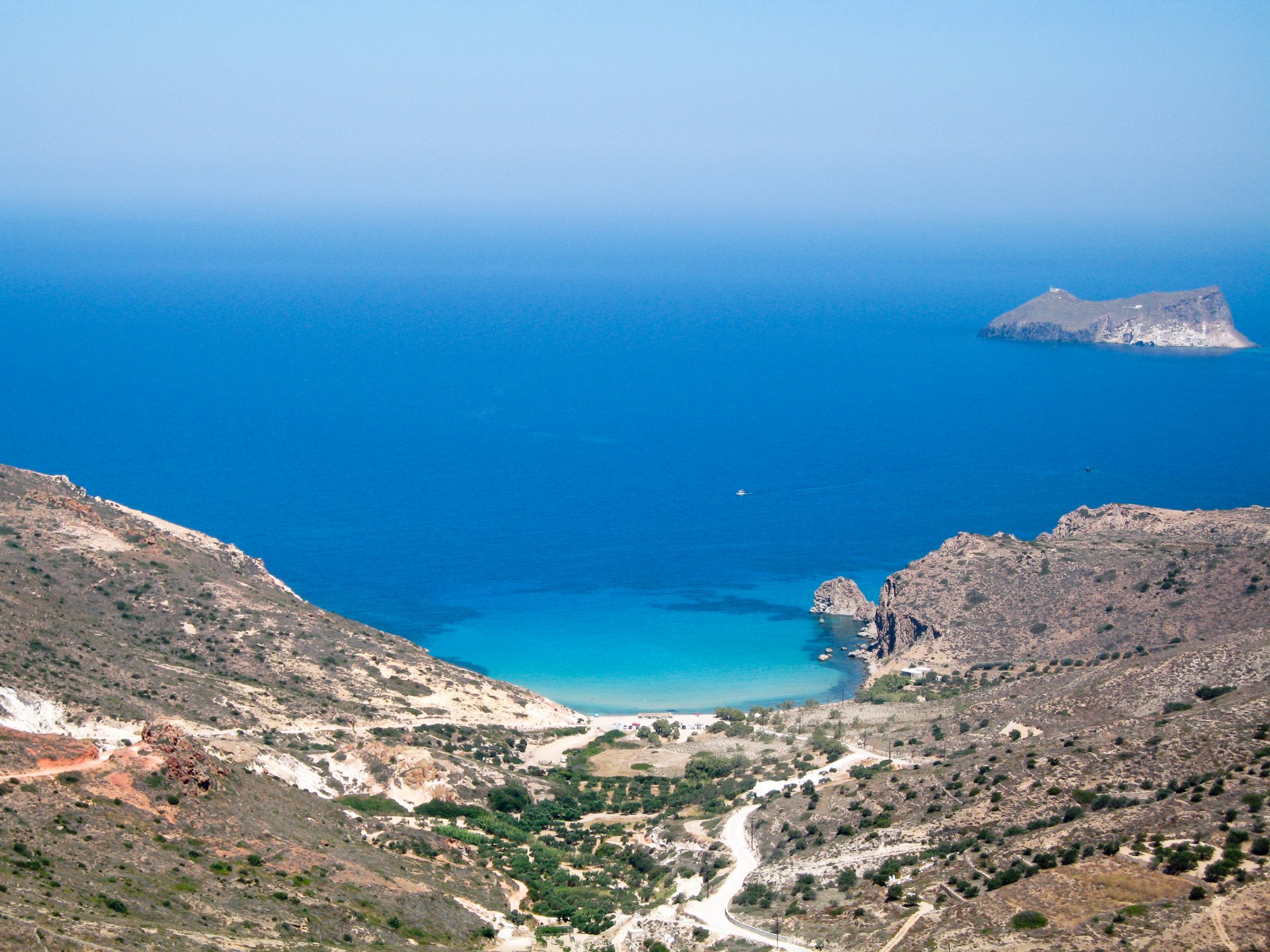 «Γνωστή για το ηφαιστειακό τοπίο της και με περισσότερες από 80 παραλίες, στη Μήλο θα βρείτε θαλάσσιες σπηλιές, βότσαλα στο χρώμα του ουράνιου τόξου και σμαραγδένια νερά».
