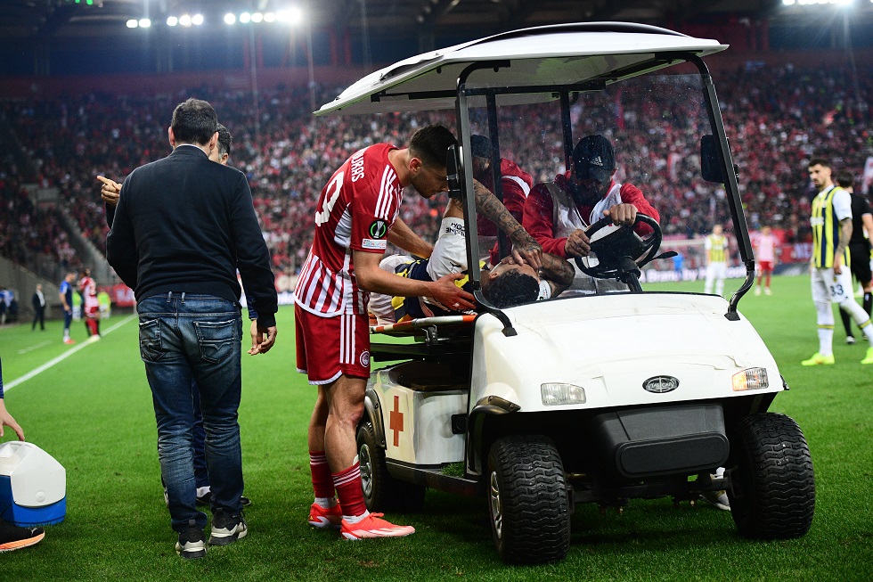O Τζέιντεν Οστερβέλντε τραυματίστηκε σε μια ανύποπτη φάση λίγο πριν το φινάλε του πρώτου μέρους στο «Γεώργιος Καραϊσκάκης», αποχωρώντας από το γήπεδο με φορείο και δάκρυα στα μάτια.