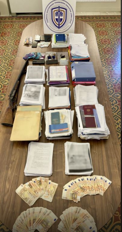 Κατασχέθηκαν, πλήθος εγγράφων που αφορούν αλλοδαπούς και ακίνητα, χρήματα, καραμπίνα και σφραγίδες