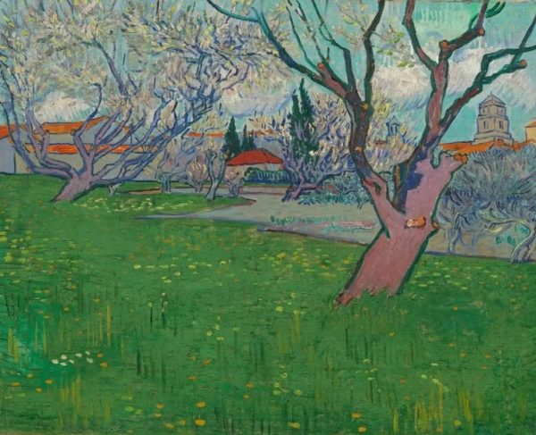 Η τελευταία ανοιξιάτικη σκηνή του Βαν Γκογκ ήταν το Orchard in Blossom (Απρίλιος 1889), ένας πιο συμβατικός πίνακας. Δεν ήταν απόλυτα ικανοποιημένος με αυτόν, και τον τελειοποίησε αργότερα τον Ιούλιο. Έγραψε στον αδελφό του: «Άρχισα να το ξαναδουλέψω και βρήκα έναν τρόπο να εκφράσω καλύτερα την αρμονία των τόνων». Αυτή ήταν συχνά η πρακτική του: να κάνει το μεγαλύτερο μέρος της δουλειάς σε ένα τοπίο έξω, μπροστά στο θέμα, και στη συνέχεια να κάνει μικρές χρωματικές προσαρμογές πίσω στο ατελιέ του.