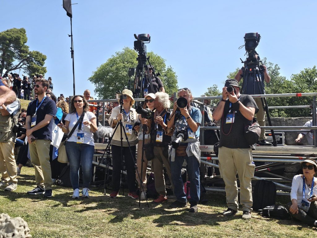 Ιδιαίτερα αυξημένη είναι και η παρουσία ξένων ΜΜΕ που θα προβάλλουν ανάλογα την Τελετή Αφής. Εκτός από τους Γάλλους που δείχνουν ιδιαίτερα μεγάλο ενδιαφέρον λόγω της τέλεσης των Ολυμπιακών στο Παρίσι, έχουν ταξιδέψει στην Αρχαία Ολυμπία, όλα τα μεγάλα διεθνή πρακτορεία όπως Reuters, Αssociated Press, Getty, Agence France-Presse, Χinhua, τα οποία θα κάνουν ζωντανές συνδέσεις όπως και το CNN International.