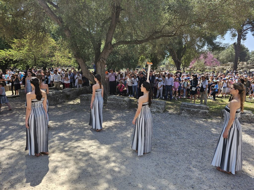 Όλα πήγαν βάσει προγράμματος και η Φλόγα άναψε κανονικά από τις αχτίδες του ήλιου στα χέρια της νέας Πρωθιέρειας Μαίρης Μηνά.