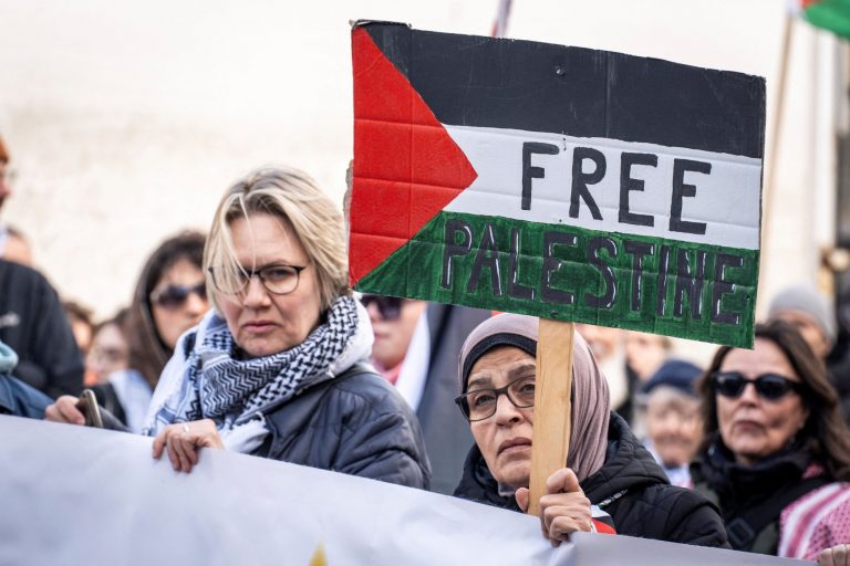 The protest was part of the global #A15ForPalestine economic blockade action.