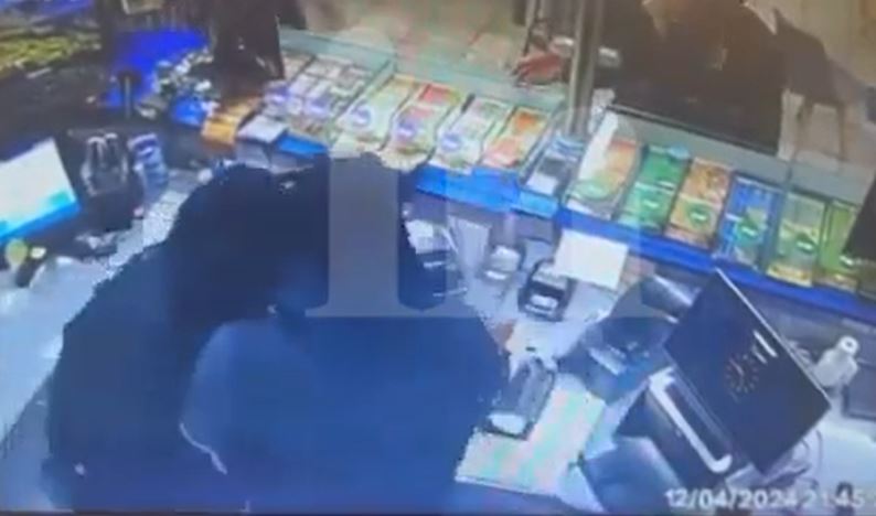 Οι υπεύθυνοι του καταστήματος φαίνεται να κλείνουν την πόρτα για να τους εγκλωβίσουν μέσα στο κατάστημα και τότε οι δύο νεαροί στην σπάνε και τρέπονται σε φυγή.