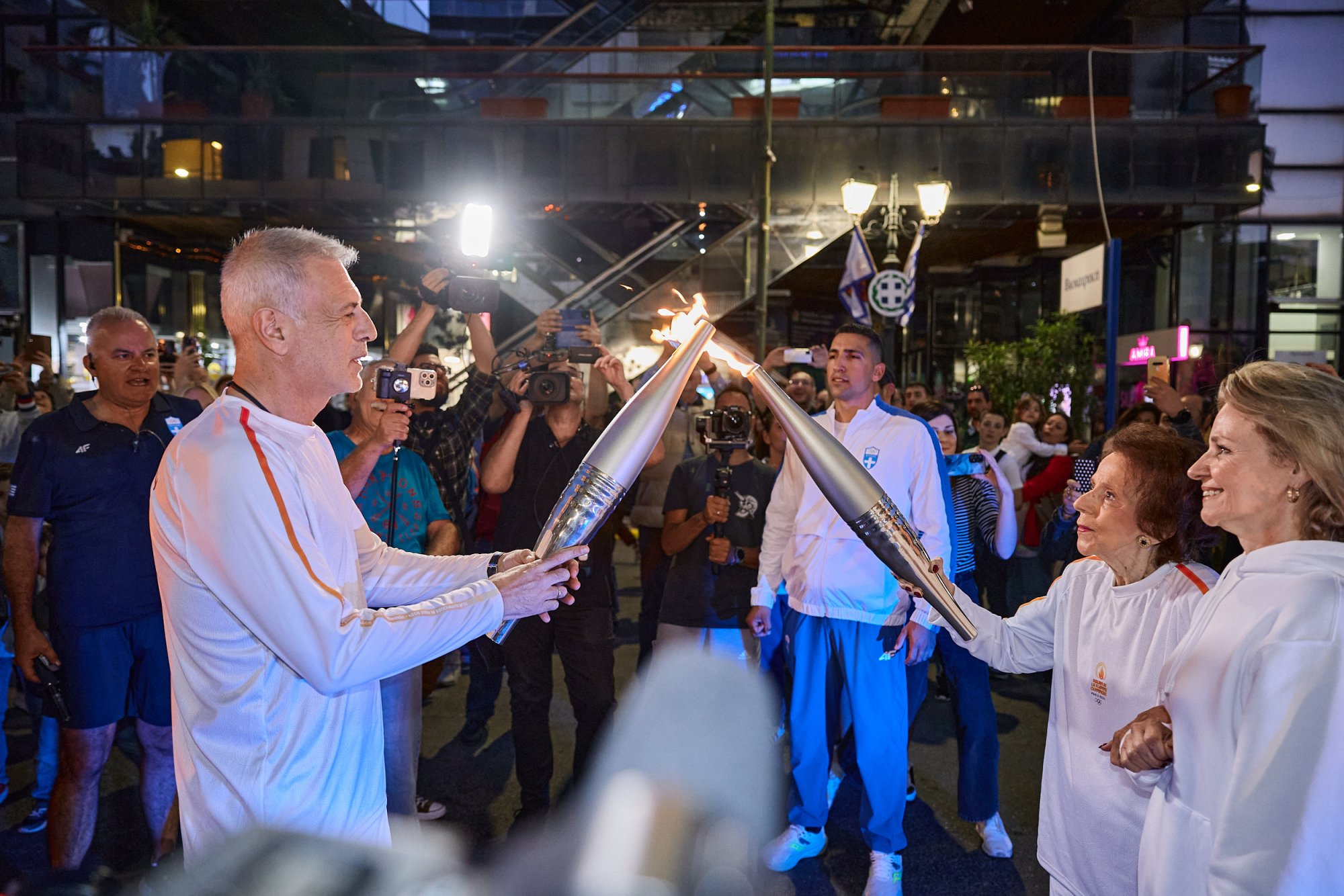 Ο Δήμαρχος Πειραιά Γιάννης Μώραλης, συνοδευόμενος από τη σύζυγό του Βάλια Κυριαζή – Μώραλη και τα παιδιά τους, Πέτρο και Γιολάντα παρέλαβε την Φλόγα από την Ιατρό γυναικολόγο, Πρόξενο επί τιμή της Ελλάδος στη Λυών, Ιππότη του Εθνικού Τάγματος της Λεγεώνας της Τιμής, της Γαλλικής Δημοκρατίας Δρ. Αικατερίνη Βαλασσοπούλου – Imbert και αφού διένυσε τη διαδρομή από τη συμβολή των οδών Ηρώων Πολυτεχνείου και Μπουμπουλίνας έως το εμβληματικό Δημοτικό Θέατρο άναψε το βωμό και ξεκίνησε το τελετουργικό υποδοχής της Ολυμπιακής Φλόγας, σκορπίζοντας ρίγη συγκίνησης.