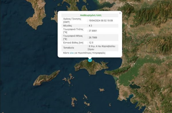 Το επίκεντρο του σεισμού εντοπίζεται 12 χιλιόμετρα ανατολικά του Καρλοβασίου.