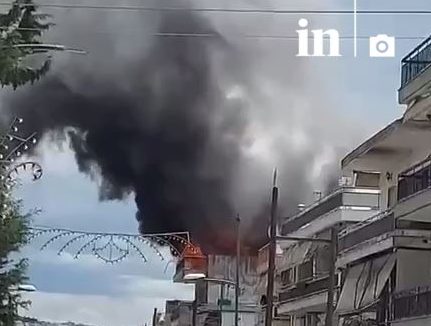 Η φωτιά έχει ξεσπάσει σε δώμα τριώροφης πολυκατοικίας