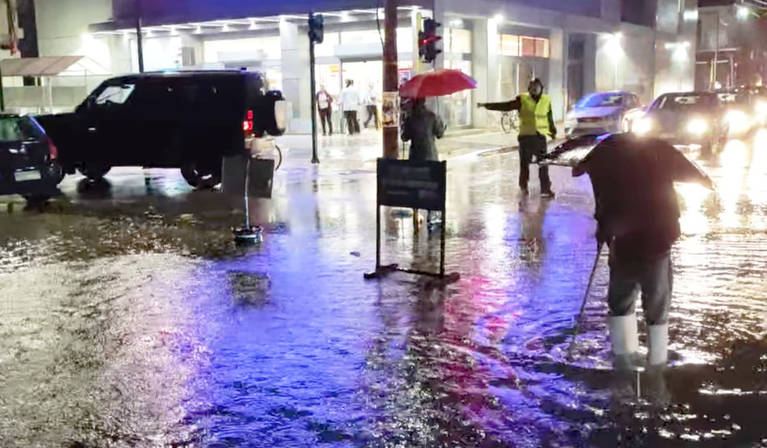 Μάλιστα η βροχή έφτασε για κάποια λεπτά τα 312 χιλιοστά/ώρα και χρειάστηκε να επέμβει η αστυνομία προκειμένου να ρυθμίσει την κυκλοφορία και να διακόψει τη διέλευση των οχημάτων.