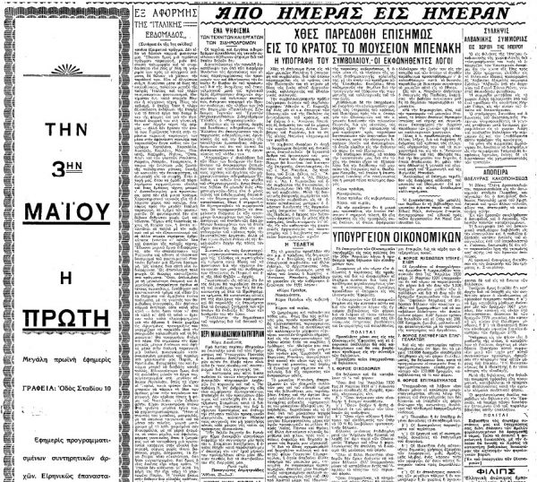 «ΕΛΕΥΘΕΡΟΝ ΒΗΜΑ», 23.4.1931, Ιστορικό Αρχείο «ΤΟ ΒΗΜΑ» & «ΤΑ ΝΕΑ»