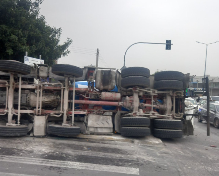Ευτυχώς, δεν έπεσε πάνω σε άλλο όχημα και στο σημείο δεν περίμενε κανένας πεζός για το φανάρι. Το ατύχημα συνέβη λίγο πριν τις 8:00 το πρωί της Τρίτης και όπως φαίνεται σε βίντεο ντοκουμέντο διακρίνεται η μπετονιέρα να στρίβει δεξιά. Τη στιγμή που ο οδηγός έχει πάρει τη στροφή, φαίνεται ένα Ι.Χ. να κάνει προσπέραση και τότε η μπετονιέρα ανατρέπεται, καθώς την τελευταία στιγμή προσπαθεί να αλλάξει πορεία για να μην υπάρξει σύγκρουση.