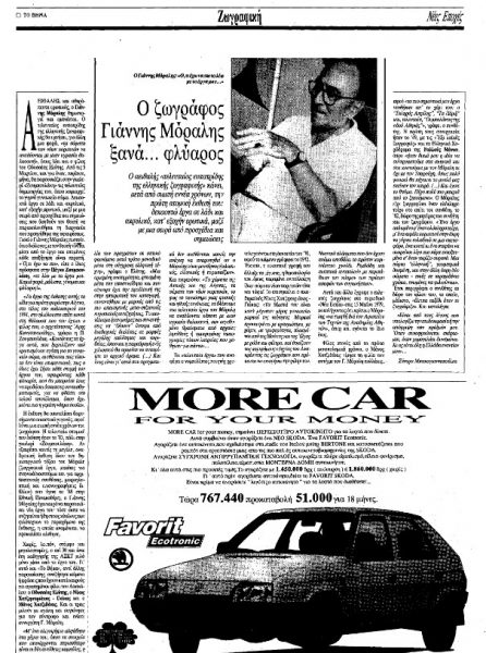 *Άρθρο για τον Γιάννη Μόραλη με την υπογραφή της Σάντρας Μπακογιαννοπούλου. Έφερε τον τίτλο «Ο ζωγράφος Γιάννης Μόραλης ξανά… φλύαρος» και είχε δημοσιευτεί στην εφημερίδα «Το Βήμα» την Κυριακή 23 Φεβρουαρίου 1992.