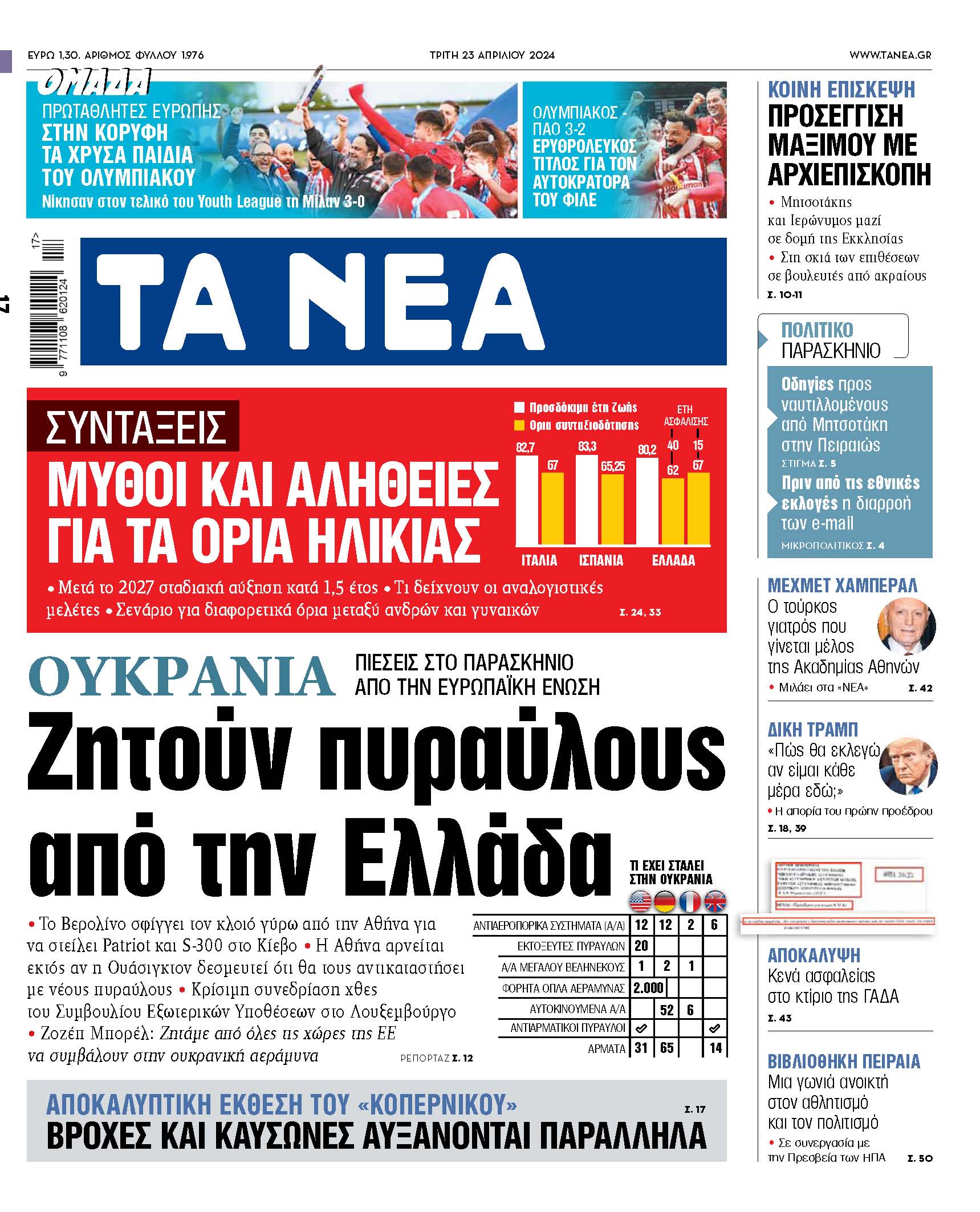 Στα «ΝΕΑ» της Τρίτης: Ζητούν πυραύλους από την Ελλάδα