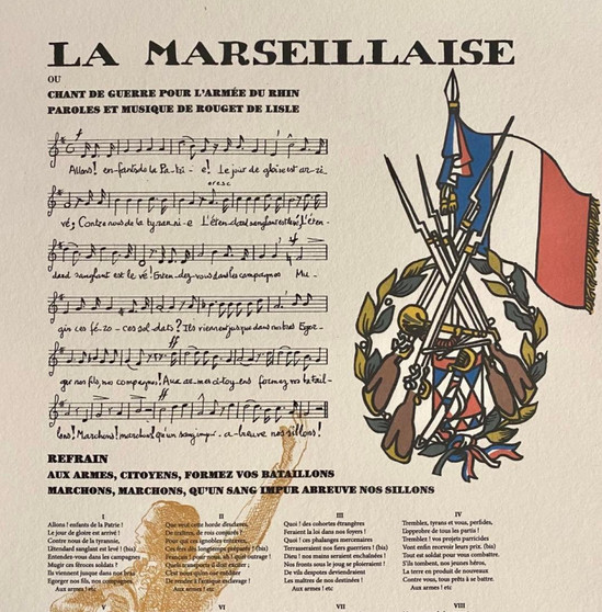 Η «Μασσαλιώτιδα» (La Marseillaise), που συνέθεσε κατά παραγγελία του δημάρχου του Στρασβούργου ο αξιωματικός του Γαλλικού Στρατού Claude-Joseph Rouget de Lisle (1760-1836) τη νύχτα της 25ης προς την 26η Απριλίου 1792 (ο αρχικός τίτλος της ήταν «Πολεμικό εμβατήριο για τη Στρατιά του Ρήνου»), κατέστη εθνικός ύμνος της Γαλλίας με διάταγμα που εκδόθηκε από τη Γαλλική Εθνοσυνέλευση στις 14 Ιουλίου 1795.