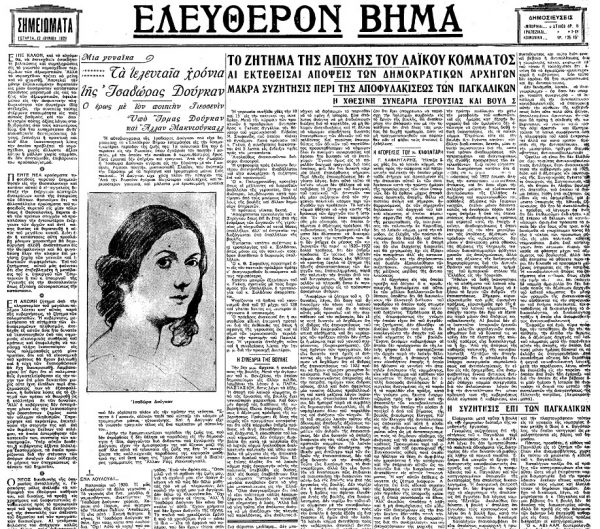 *Απόσπασμα από άρθρο που έφερε τον τίτλο «Τα τελευταία χρόνια της Ισαδώρας Δούγκαν» και είχε δημοσιευτεί στην εφημερίδα «Ελεύθερον Βήμα» την Τετάρτη 12 Ιουνίου 1929.