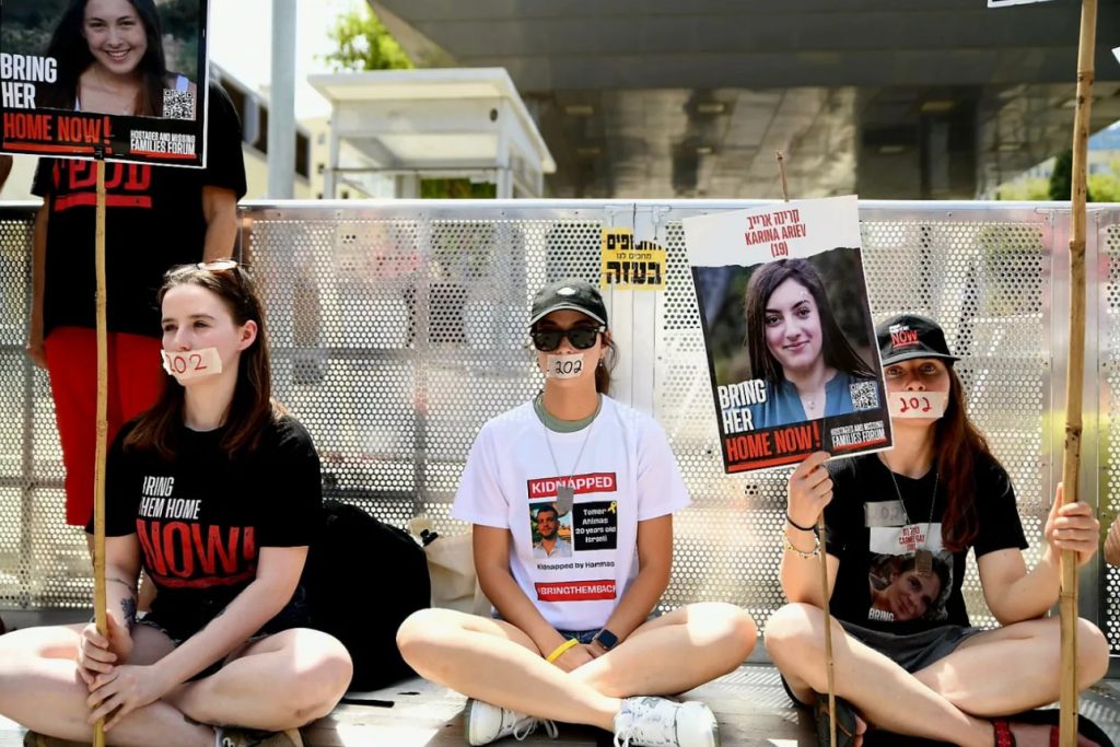 Στιγμιότυπο από διαδήλωση στο Τελ Αβίβ για την απελευθέρωση των ομήρων που κρατούνται στη Γάζα.