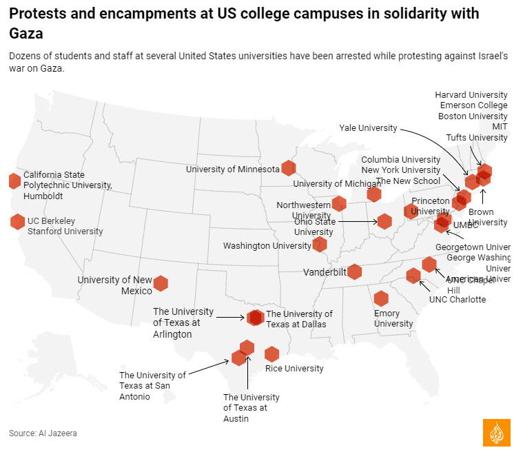 Οι διαδηλώσεις αλληλεγγύης στη Γάζα συνεχίστηκαν σε πανεπιστήμια σε όλες τις Ηνωμένες Πολιτείες, παρά τη σφοδρή αντίδραση της αστυνομίας σε αρκετές πανεπιστημιουπόλεις