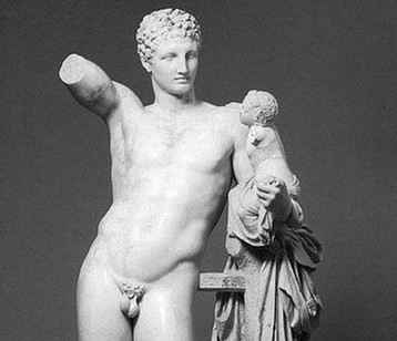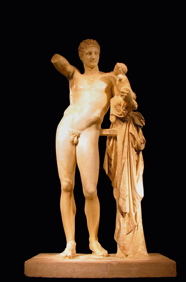 Δημιούργημα των Ύστερων Κλασικών Χρόνων (περί το 330 π.X.), το υπό εξέταση μαρμάρινο σύμπλεγμα (Ερμής φέρων τον Διόνυσον) θεωρείται το μόνο πρωτότυπο έργο του ξακουστού αθηναίου γλύπτη Πραξιτέλη (4ος αιώνας π.Χ.) που έχει σωθεί.