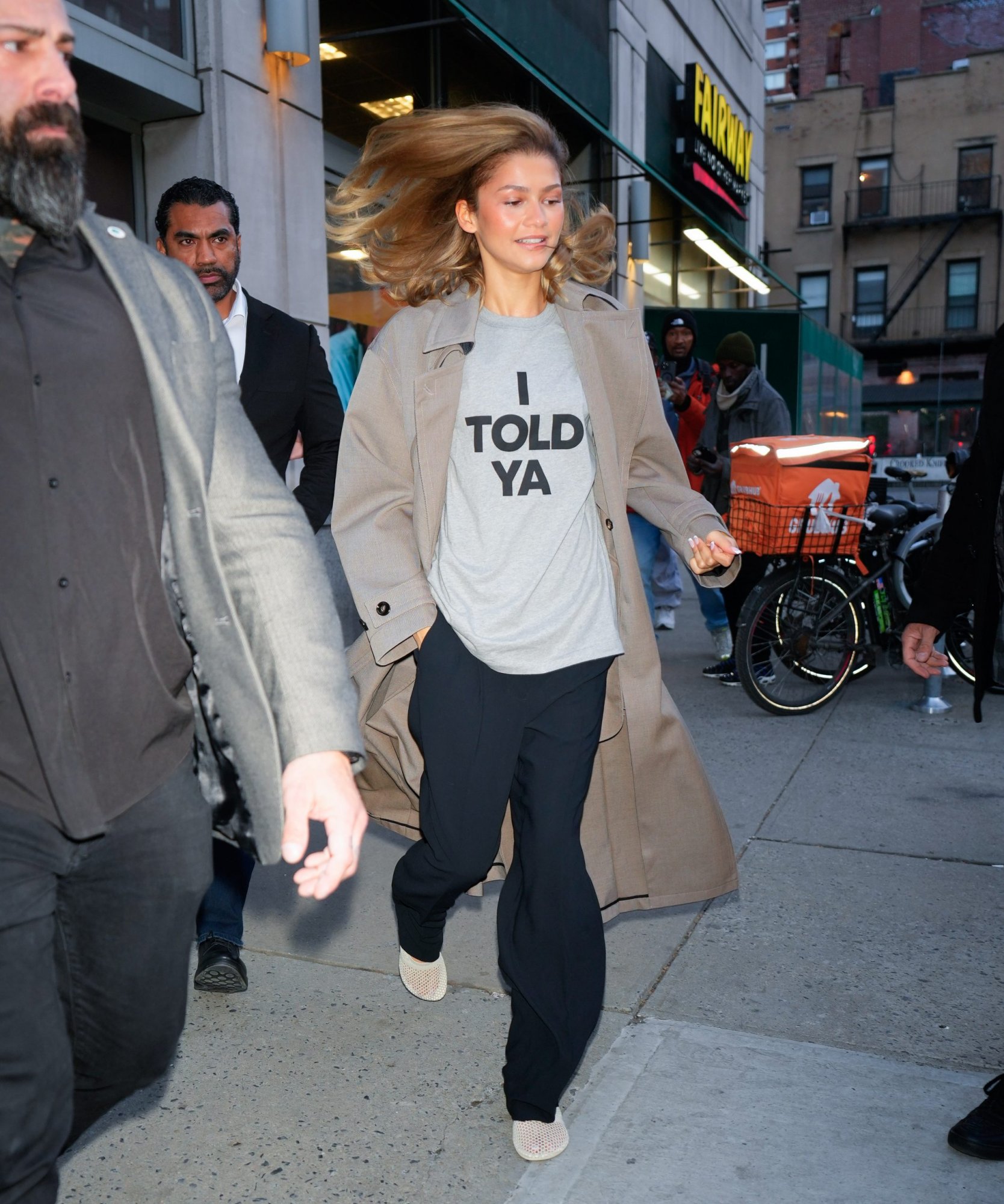 Λίγες μέρες πριν, η Zendaya βγήκε στη Νέα Υόρκη φορώντας ένα μπλουζάκι με τη φράση “I TOLD YA” στο μπροστινό μέρος. Ναι, γνωρίζει καλά ότι παρακολουθούμε κάθε δημόσια εμφάνισή της, ενώ ταξιδεύει σε όλο τον κόσμο για την προώθηση της νέας της ταινίας, Challengers με μια ενδυματολογική οξυδέρκεια που συναγωνίζεται εκείνη της Margot Robbie στο press tour της Barbie αλλά και της ίδιας για τα Dune 1 και 2.