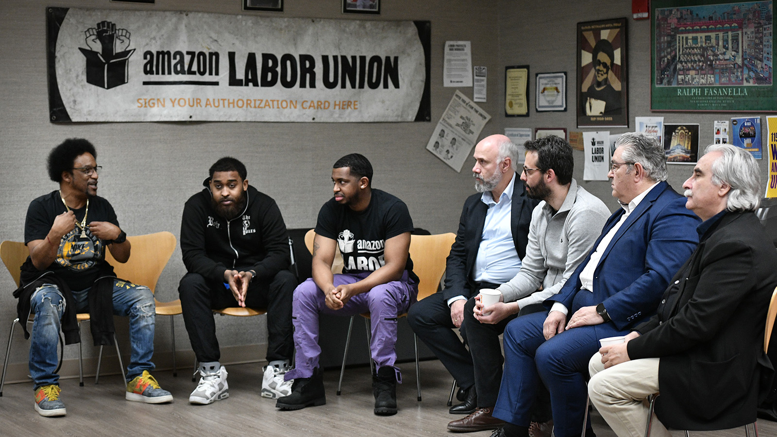 Οι εργαζόμενοι της Amazon ενημέρωσαν συνολικά «για την πάλη του σωματείου για δικαιώματα «που δε σταματάει ποτέ ενάντια σε μια τέτοια εταιρεία όπως η Amazon», για την προσπάθεια να οργανωθούν ακόμη περισσότεροι εργαζόμενοι στο σωματείο -το οποίο αριθμεί πάνω από 8000 μέλη μόνο στην εγκατάσταση του αεροδρομίου JFK- και στις δυσκολίες που αντιμετωπίζουν σε μια εταιρεία που «έχει επίσημη πολιτική να αλλάζει πολιτική οπότε θέλει», με συνεχείς απαγορεύσεις στη δράση τους».
