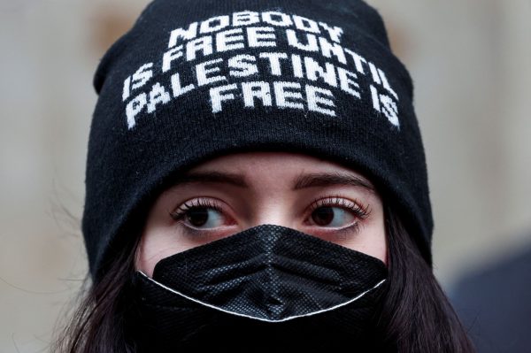 «Ντροπή σας!» φώναζαν οι διαδηλωτές με παλαιστινιακές μαντίλες, καθώς οι καλεσμένοι και άλλοι συμμετέχοντες έσπευσαν να μπουν στο εσωτερικό.