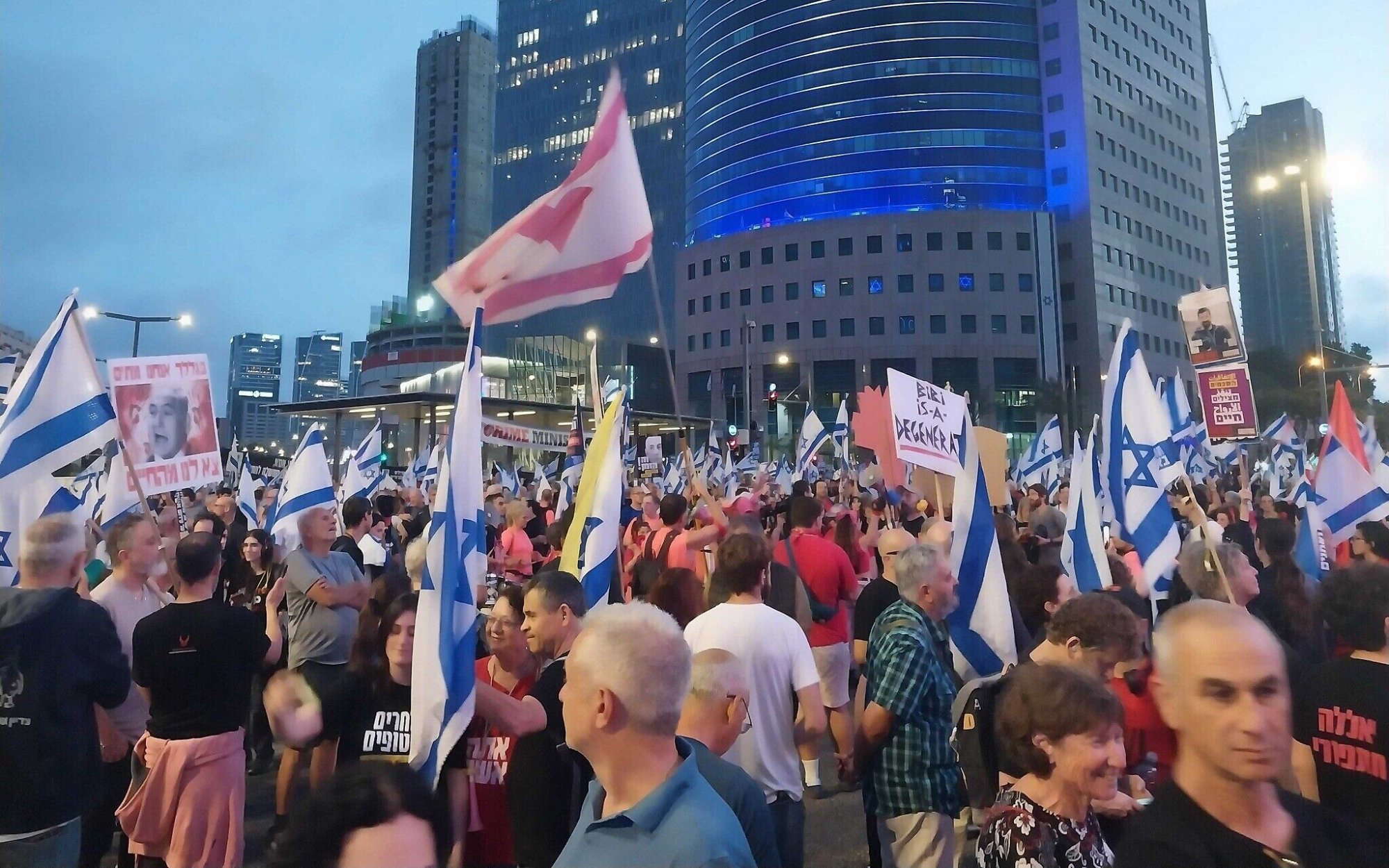 Στο Τελ Αβίβ ένα πολύ μεγαλύτερο πλήθος έχει συγκεντωθεί στην «Πλατεία Δημοκρατίας» ζητώντας επίσης πρόωρες εκλογές και συμφωνία για την απελευθέρωση των ομήρων που κρατούνται από τη Χαμάς.