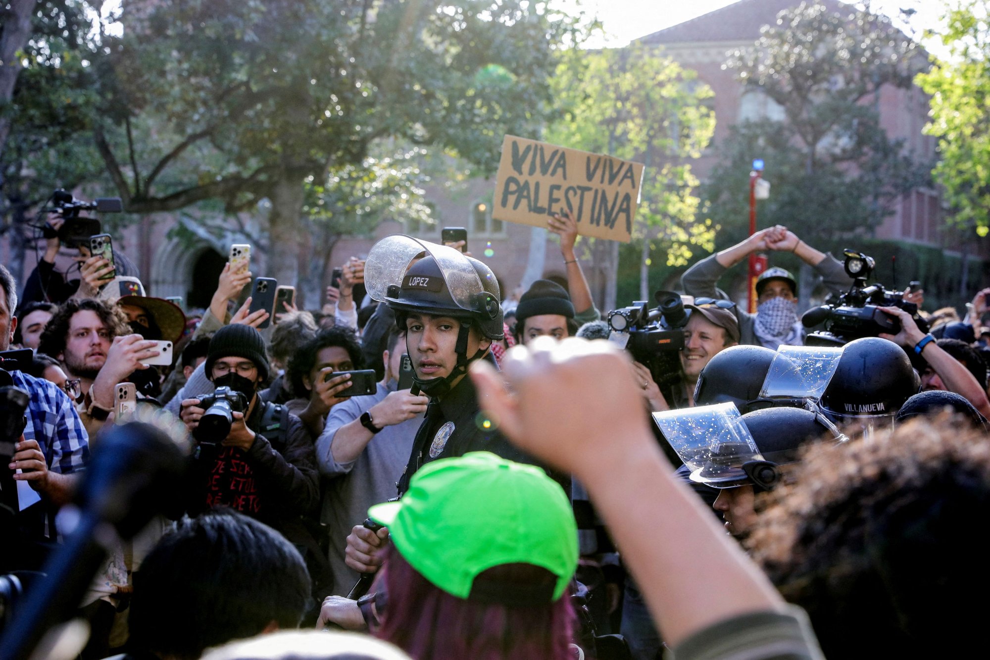 «Θα έχετε χωρίς αμφιβολία ακούσει – ακόμα κι αν δεν ήσασταν παρόντες – ότι την Τετάρτη η διοίκηση του πανεπιστημίου μας αποφάσισε να καλέσει την αστυνομία στο κάμπους αντί να ανεχτεί τις αντιπολεμικές διαδηλώσεις και τις κινητοποιήσεις των φοιτητών ενάντια στη γενοκτονία, πολλοί από τους οποίους έχουν αναλάβει χρέη προκειμένου να σπουδάσουν στο USC. 93 άτομα συνελήφθησαν, η πλειοψηφία των οποίων είναι φοιτητές και μέλη του προσωπικού.