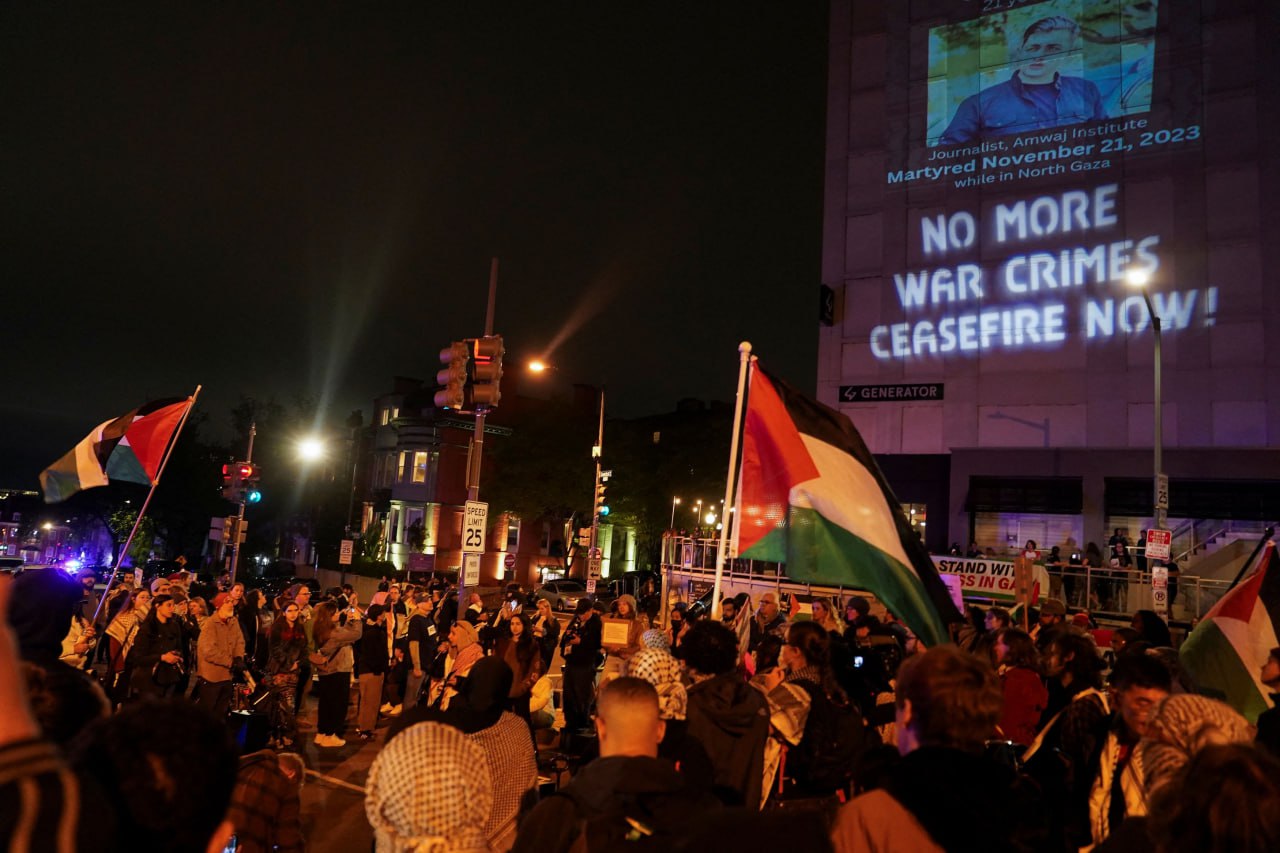 Η εκδήλωση πραγματοποιήθηκε την ώρα που επεκτείνεται στα αμερικανικά πανεπιστήμια ένα κίνημα αλληλεγγύης προς τους Παλαιστινίους