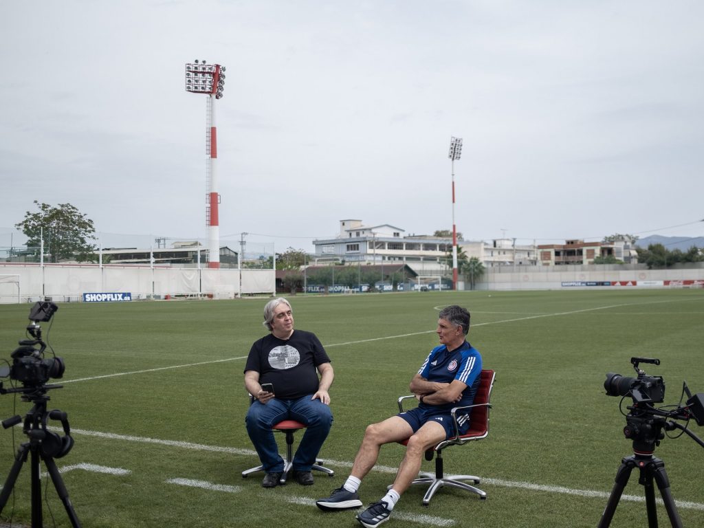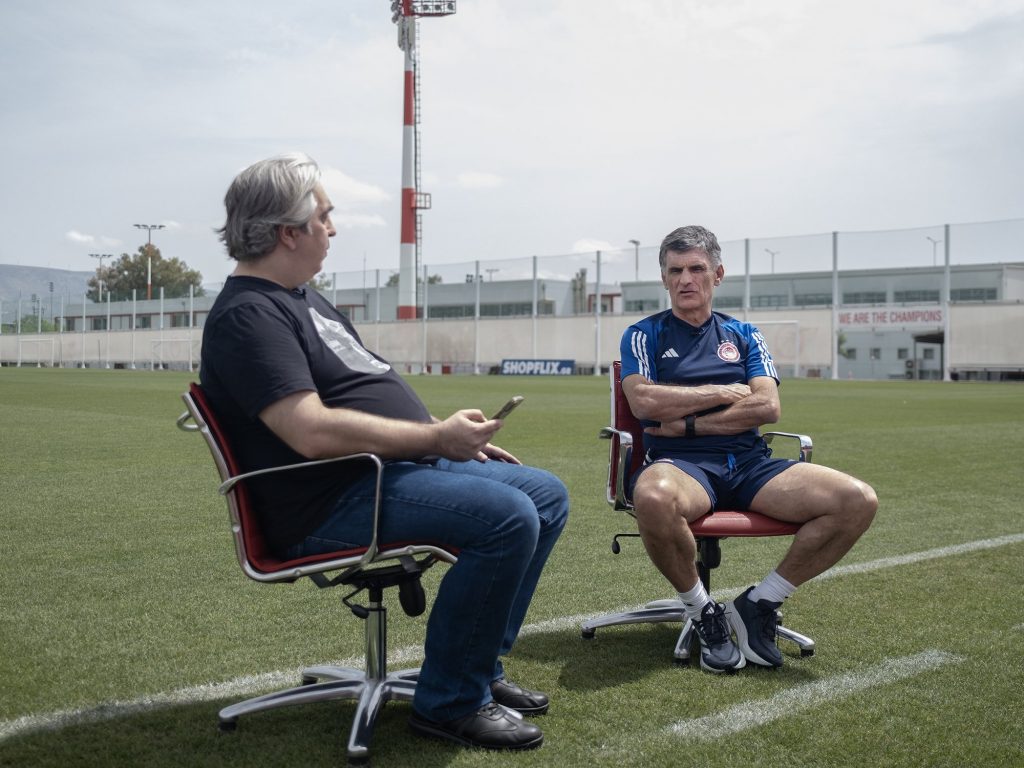 O προπονητής του Ολυμπιακού κ. Χοσέ Λουίς Μεντιλίμπαρ κατά την διάρκεια της συνέντευξης με τον δημοσιογράφο του in κ. Γιώργο Μαζιά