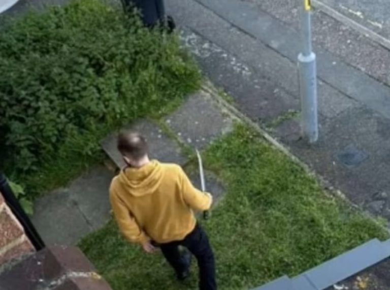 Πλάνα που αναρτήθηκαν στα μέσα κοινωνικής δικτύωσης φαίνεται να δείχνουν τον 36χρονο δράστη με το σπαθί στο χέρι να κινείται στην περιοχή.