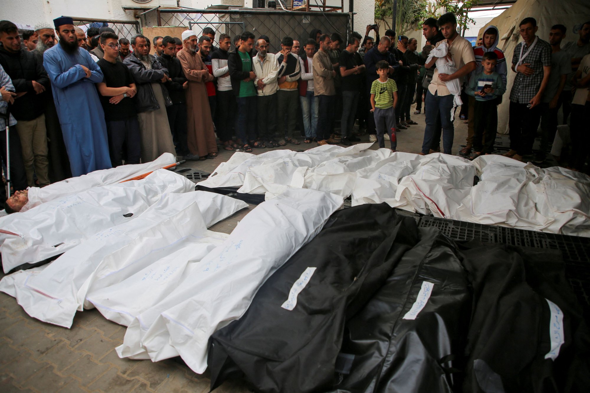 Σύμφωνα με υπαλλήλους νοσοκομείου που μίλησε το CNN, 22 άνθρωποι, ανάμεσά τους τουλάχιστον ένα βρέφος και ένα νήπιο, σκοτώθηκαν σε ισραηλινή αεροπορική επιδρομή πάνω από τη Ράφα, στη Γάζα, τη νύχτα προς Δευτέρα. Οι νεκροί μεταφέρθηκαν στο νοσοκομείο Abu Youssef Al Najjar στη Ράφα μετά την επίθεση, καθώς οι οικείοι τους συγκεντρώθηκαν για το τελευταίο αντίο.