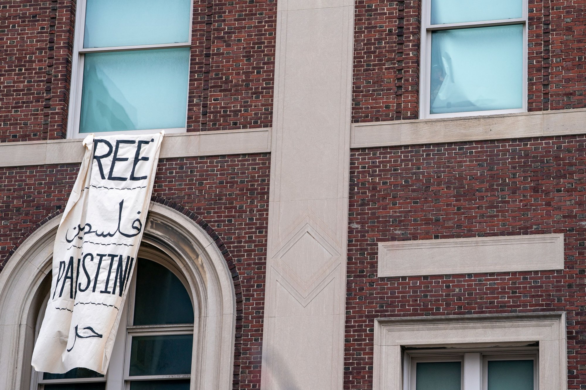 Οι διαδηλωτές που κατέλαβαν το Hamilton Hall ανήρτησαν ένα πανό από ένα παράθυρο που γράφει «Ιντιφάντα», η αραβική λέξη για την εξέγερση, μετέδωσε το CNN, παραθέτοντας ένα βίντεο.