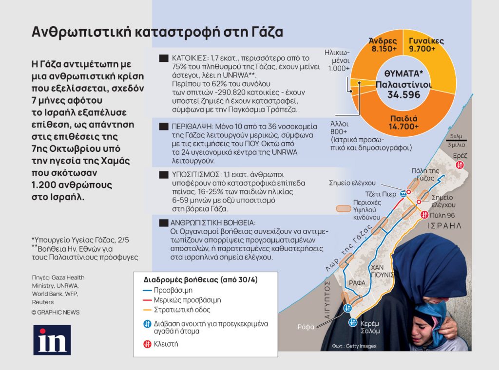11:12 Στις 34.596 οι νεκροί Παλαιστίνιοι στη Γάζα