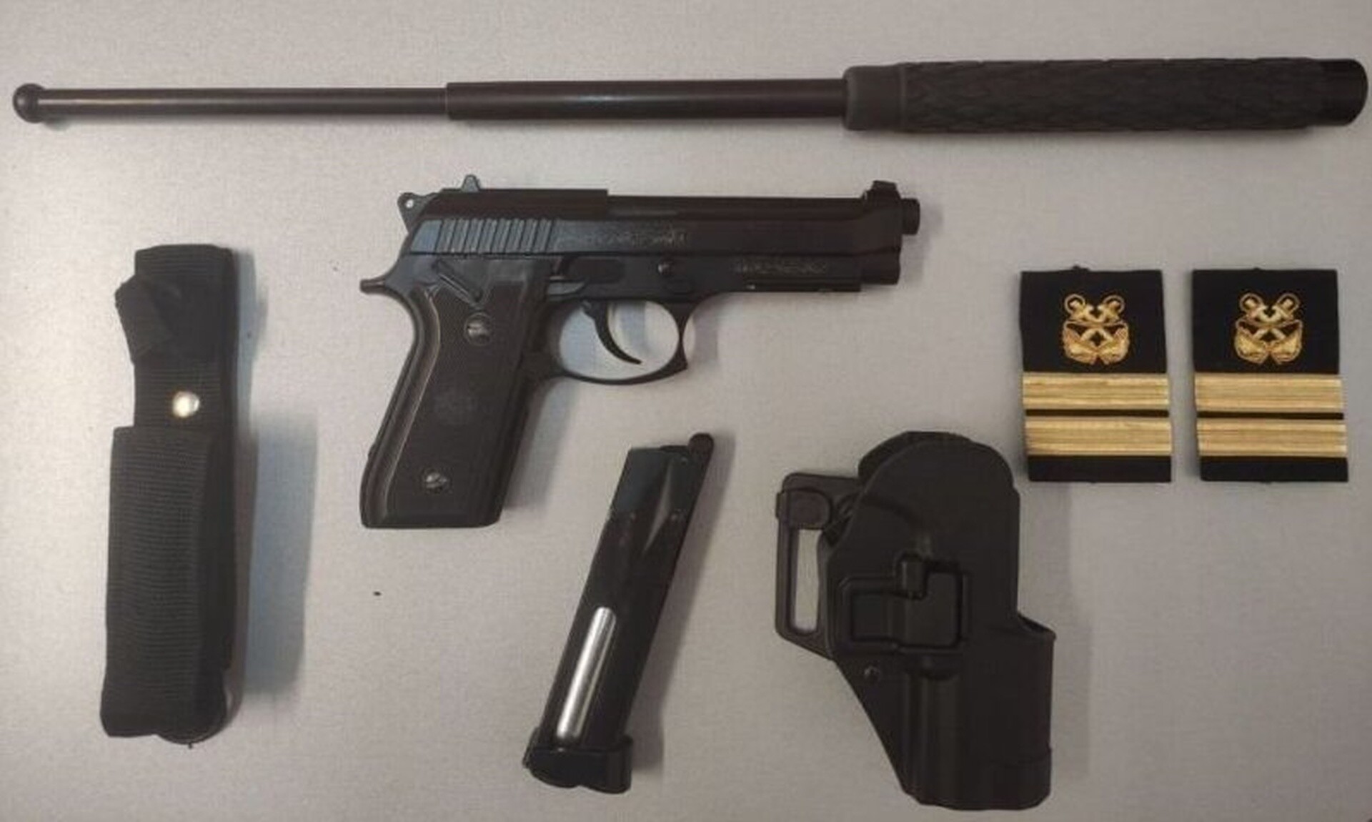 Στο σκάφος, στο οποίο διέμενε βρέθηκε ακόμα μία πλαστική θήκη μέσης πιστολιού, ενώ ο 46χρονος κάτω από το σακάκι του φορούσε λευκό πουκάμισο με επωμίδες, με τον βαθμό του ανθυποπλοιάρχου Λιμενικού Σώματος.